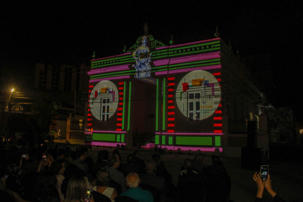 Um espetáculo de luzes, cores e sons marcou a comemoração dos 130 anos do TJAL. A projeção feita na fachada do prédio centenário do TJAL, que hoje abriga o CCM, contou um pouco da história da Corte.