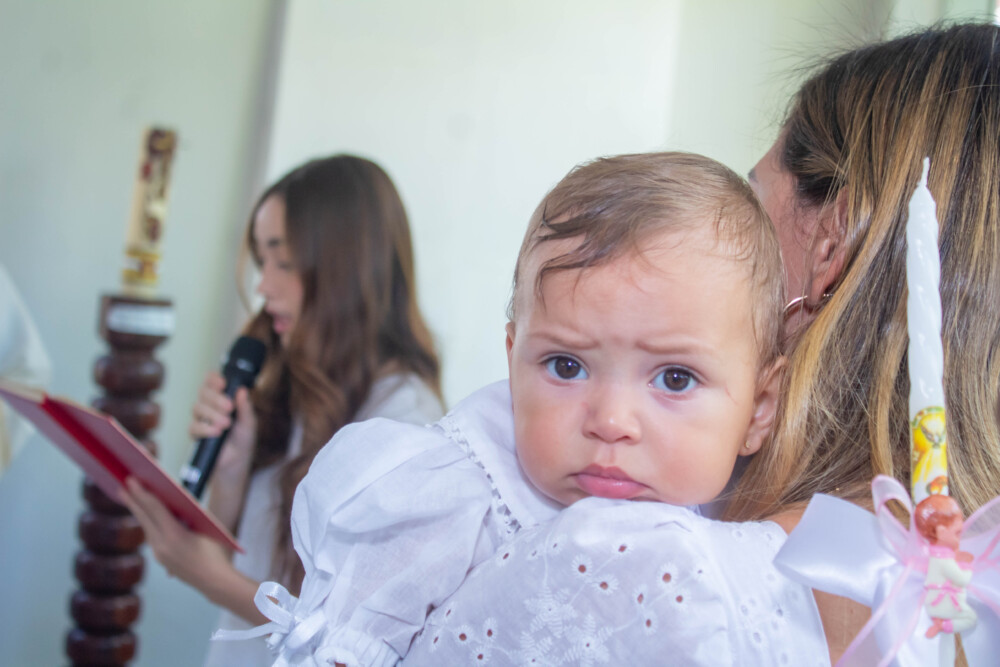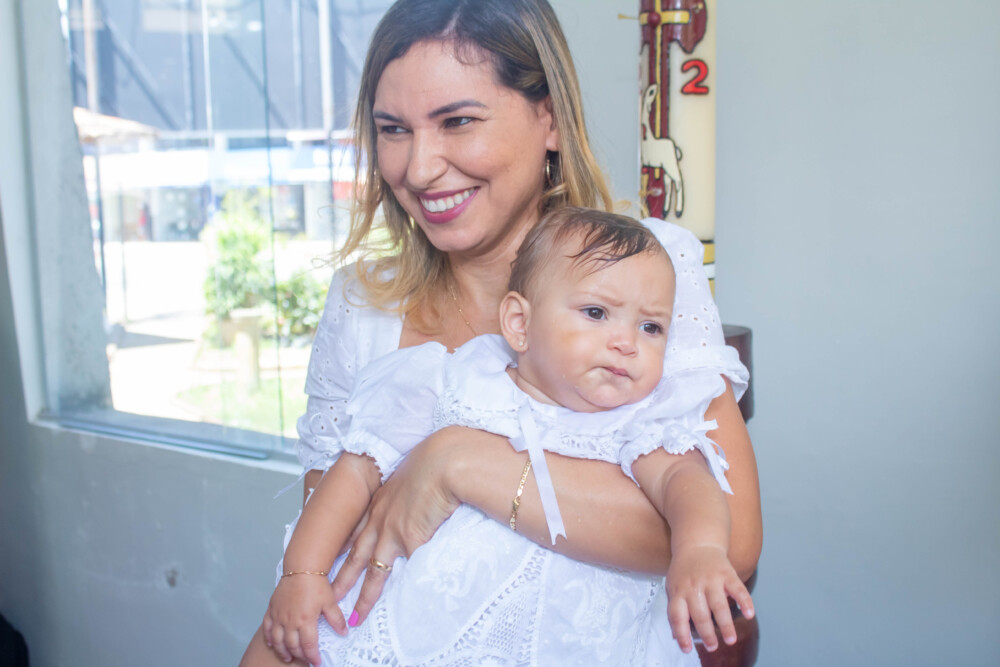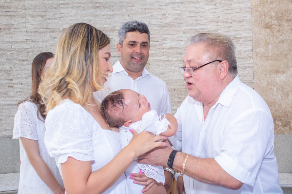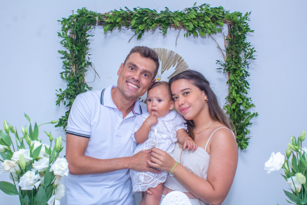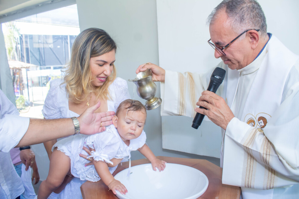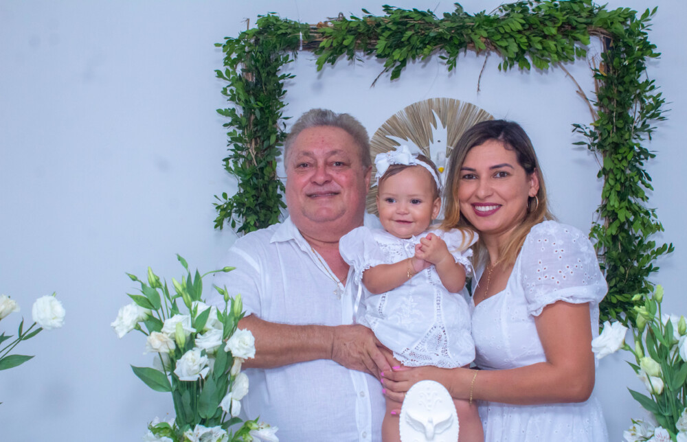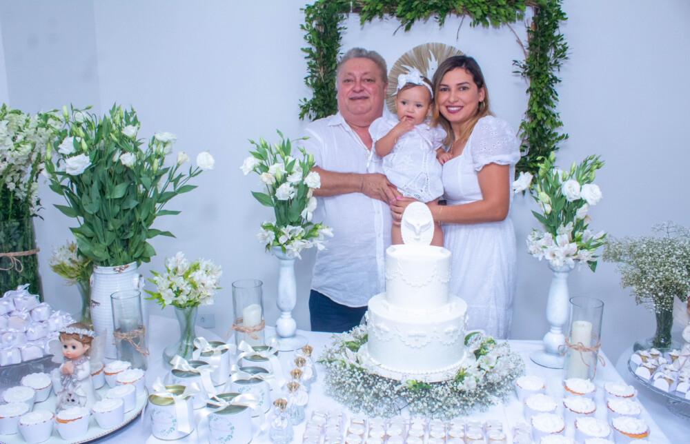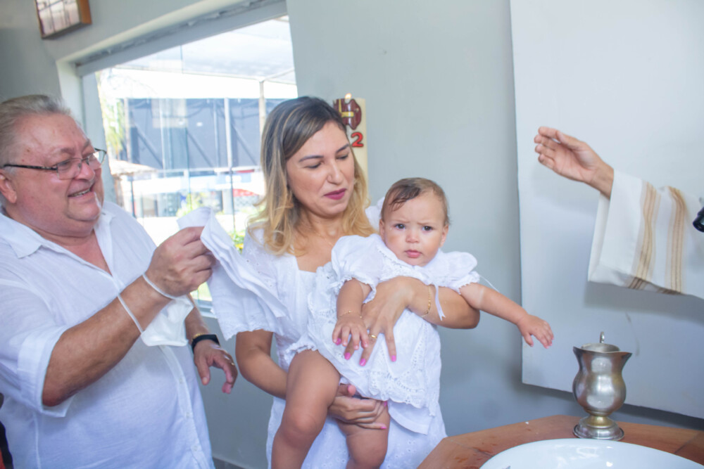 Robson Rodas e Adriana Rodas preparam um lindo batizado, cheio de fé e de luz, para pequena e linda Anathércia receber Jesus.