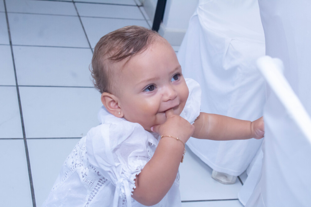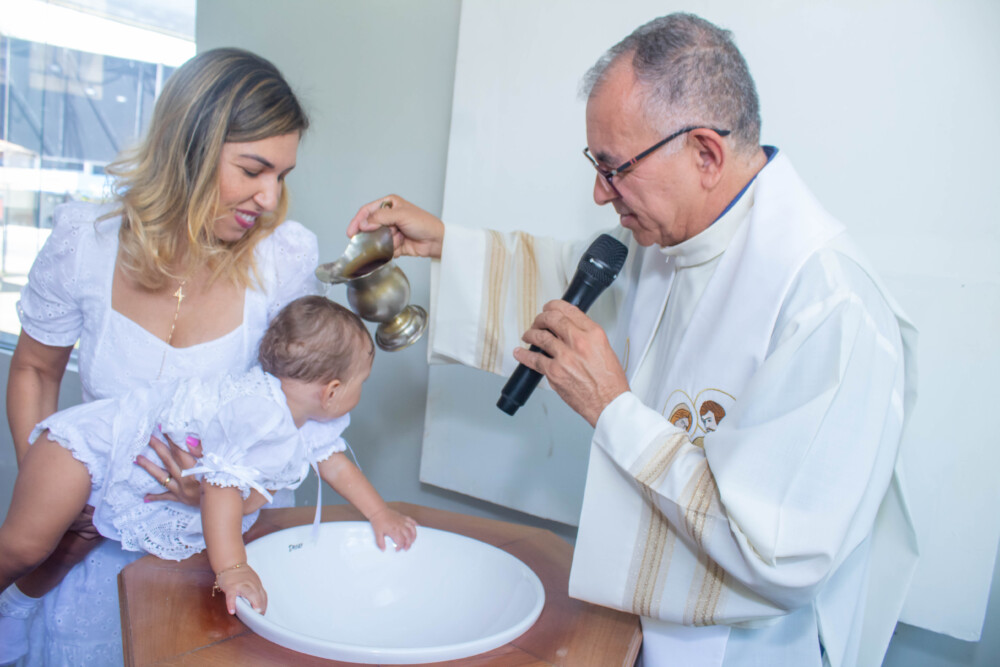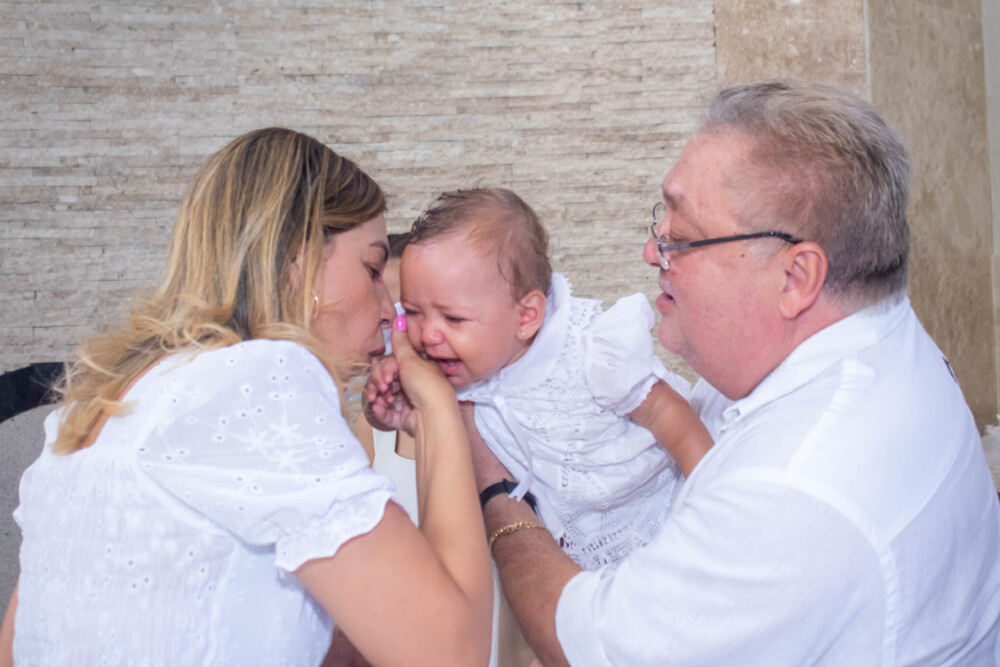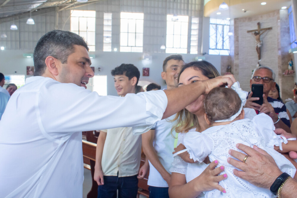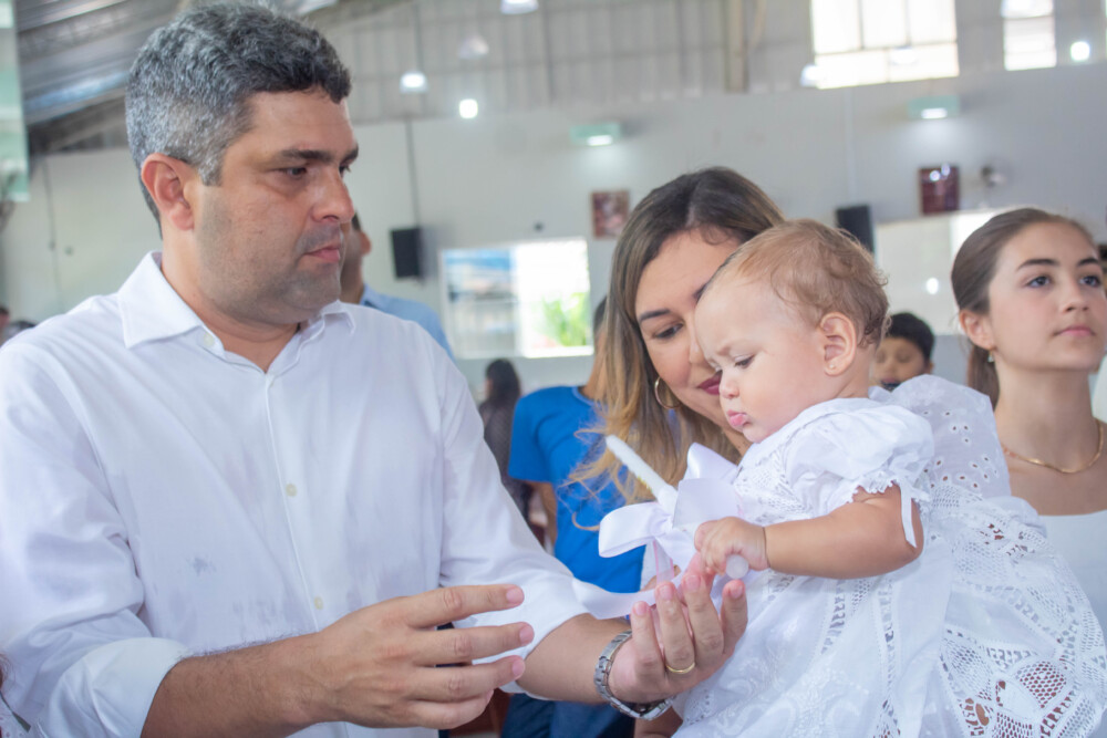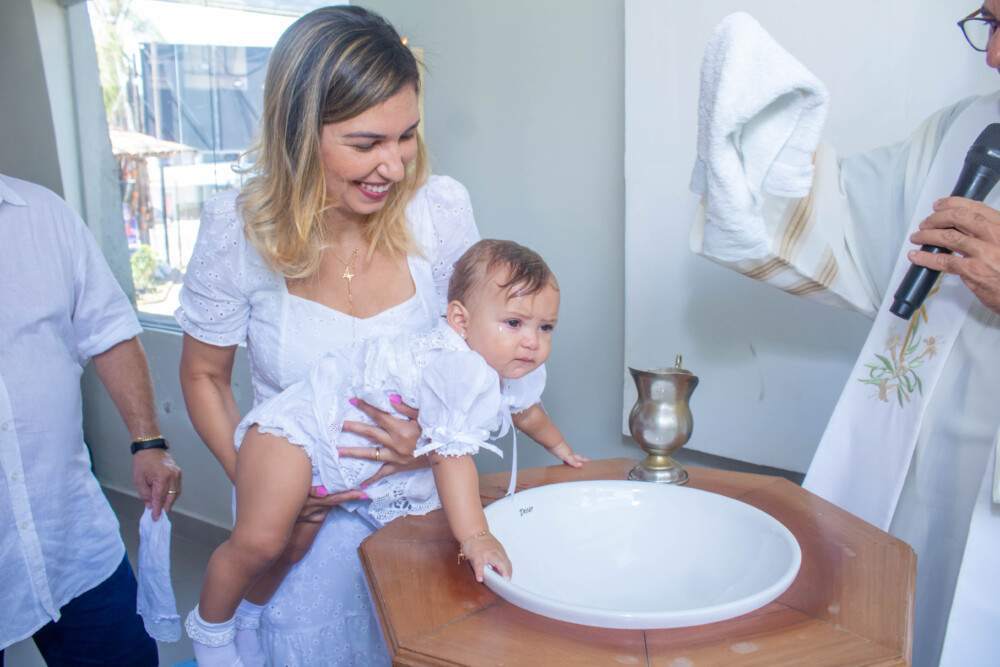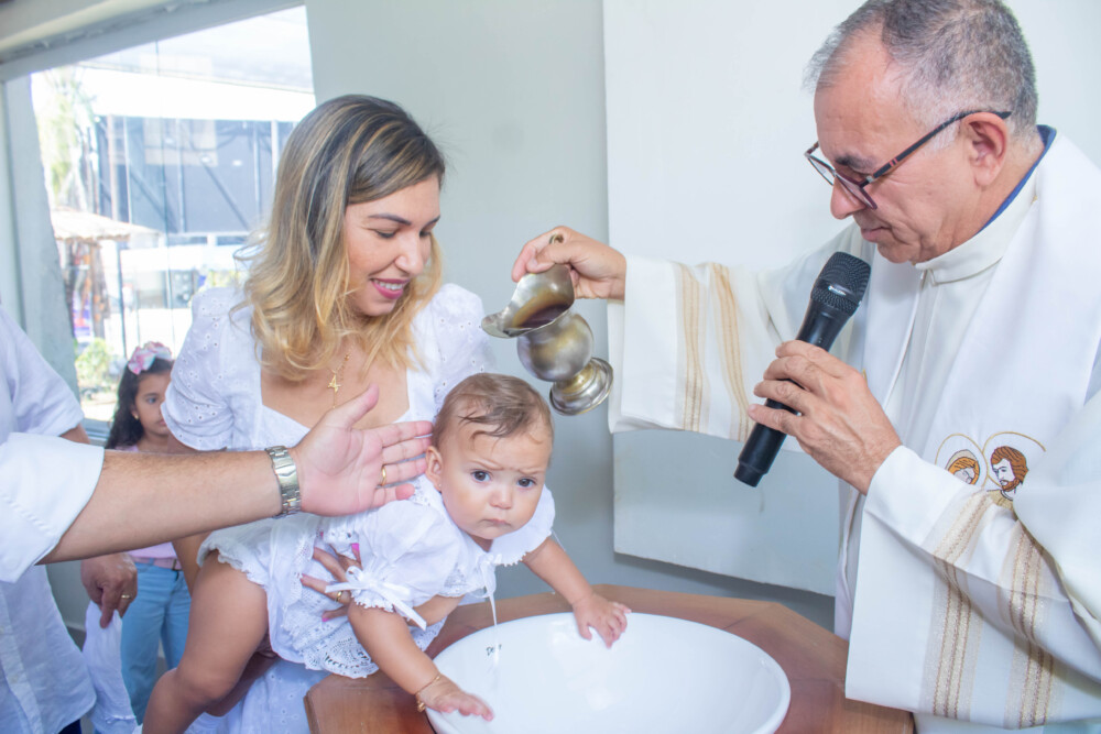 Robson Rodas e Adriana Rodas preparam um lindo batizado, cheio de fé e de luz, para pequena e linda Anathércia receber Jesus.