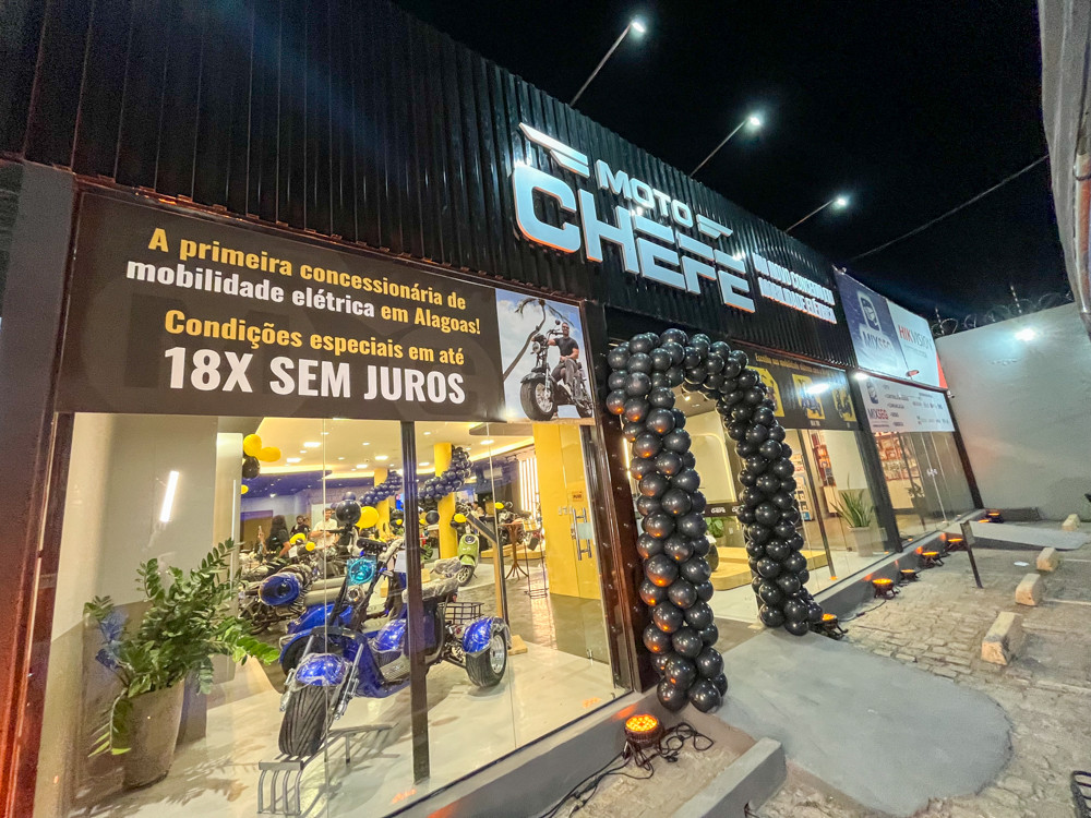 A Moto Chefe Alagoas inaugurou sua loja de mobilidade elétrica na Av. Tomás Espíndola, 248, trazendo para o estado um novo conceito em veículos sustentáveis, econômicos e silenciosos. O soft open reuniu empresários, convidados e parceiros em uma noite de música, chopp e celebração.