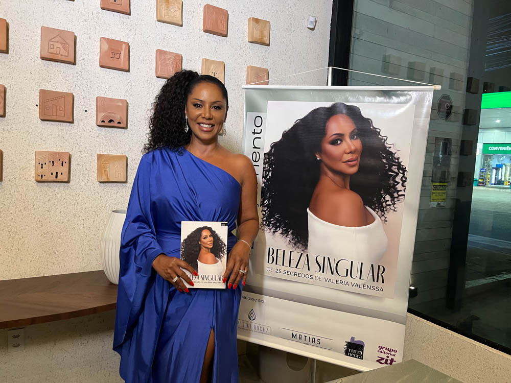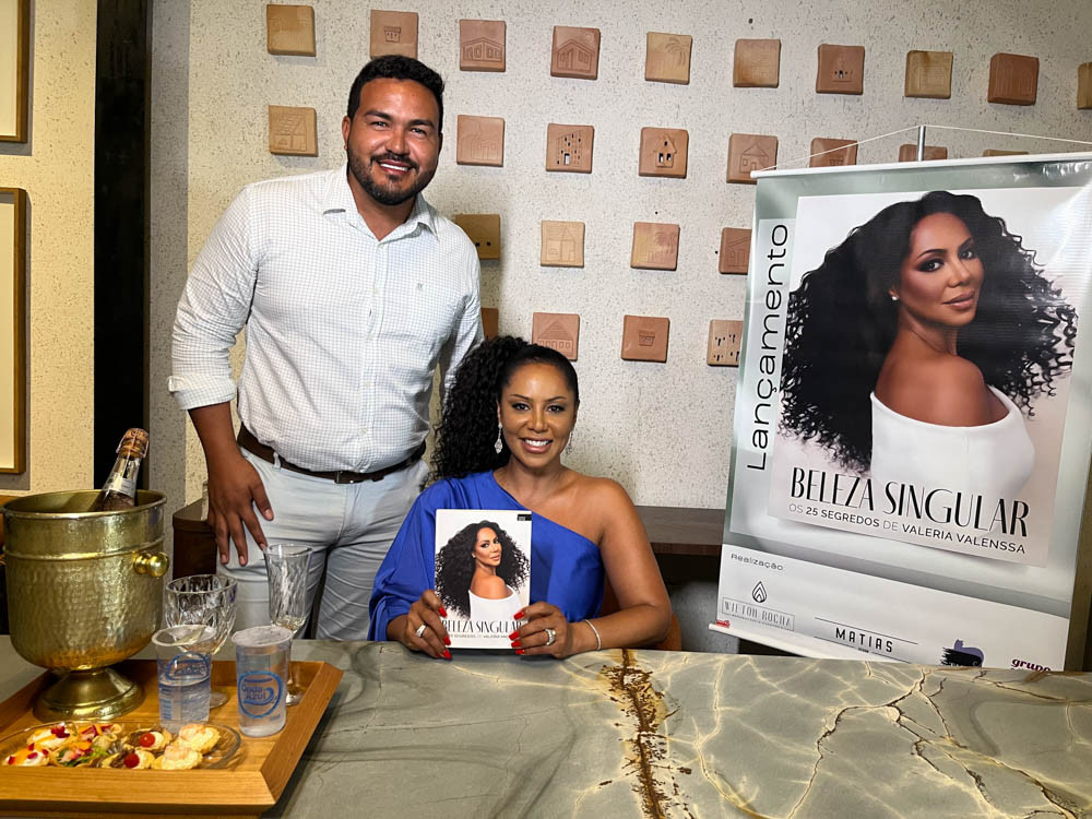 O livro “Beleza Singular – Os 25 Segredos de Valéria Valenssa” chegou a Maceió em uma noite marcada por beleza, história e representatividade. Na obra, a artista revela memórias, autoestima, fé e os bastidores de sua trajetória. A produção local é assinada por Wilton Rocha.