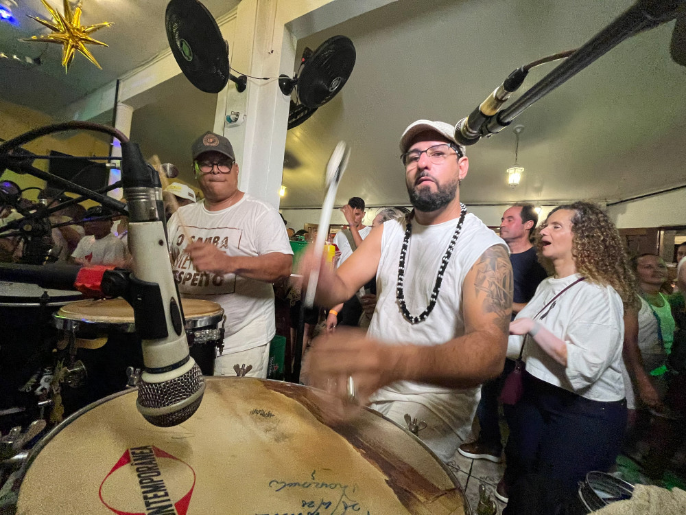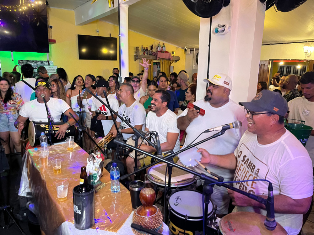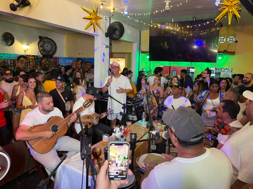 Casa cheia, todo mundo de branco, samba no ponto certo e uma energia linda pra se despedir do ano. O último samba veio com contagem regressiva, queima de fogos e muita alegria no Bombar.